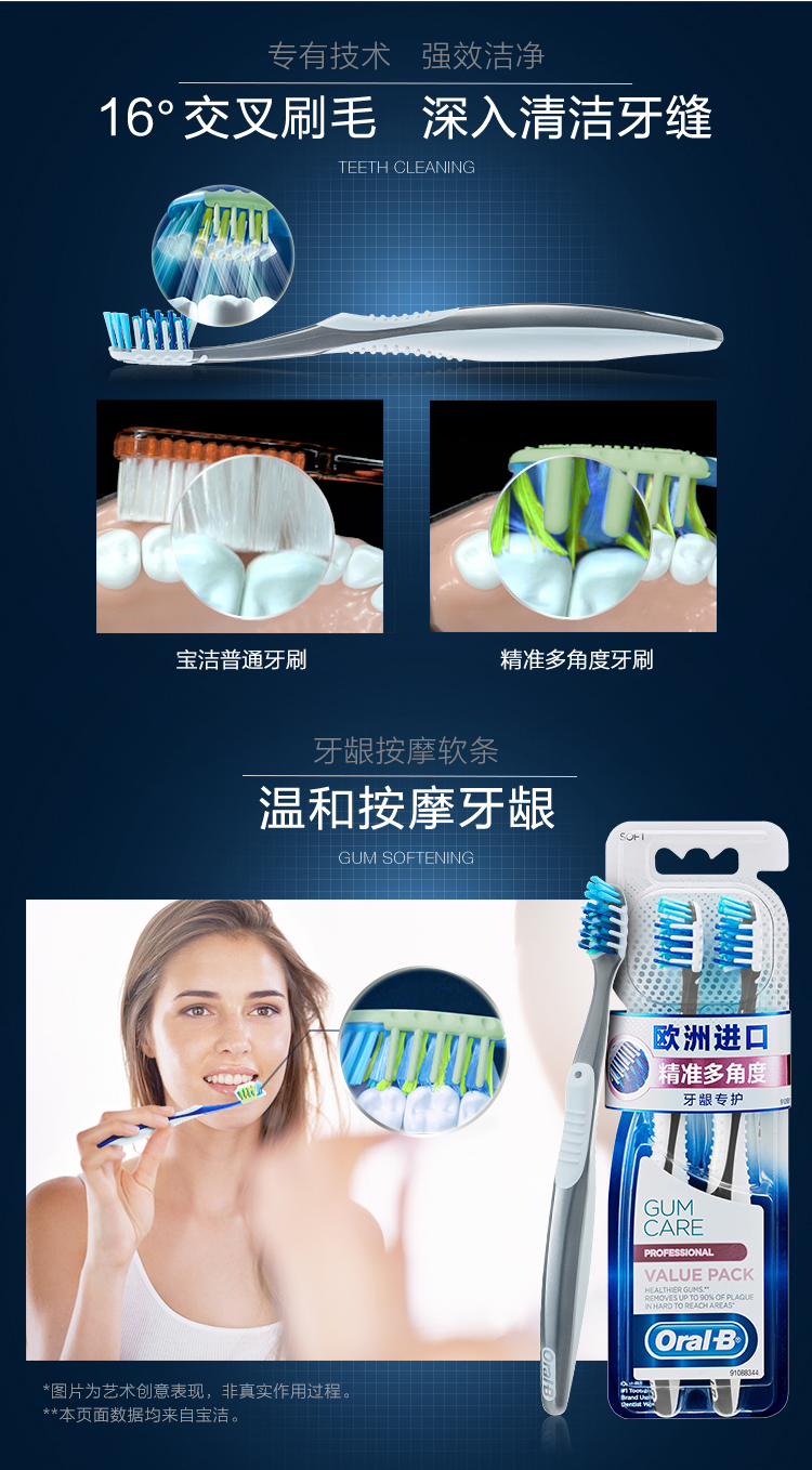 商品名称:欧乐B(OralB)牙龈专护精准多角度软毛牙刷双支装 一组2支
