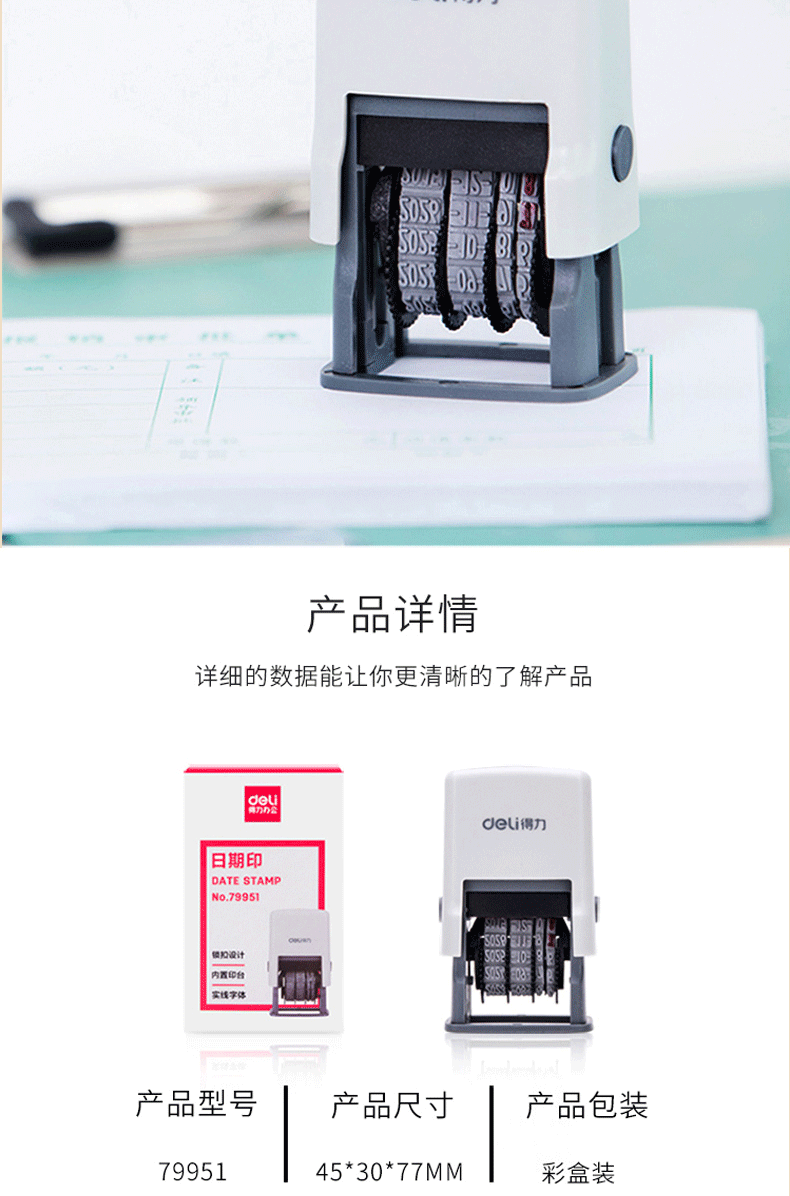 商品名称:得力77303日期印章可调年月日印财务用章文本格式印章