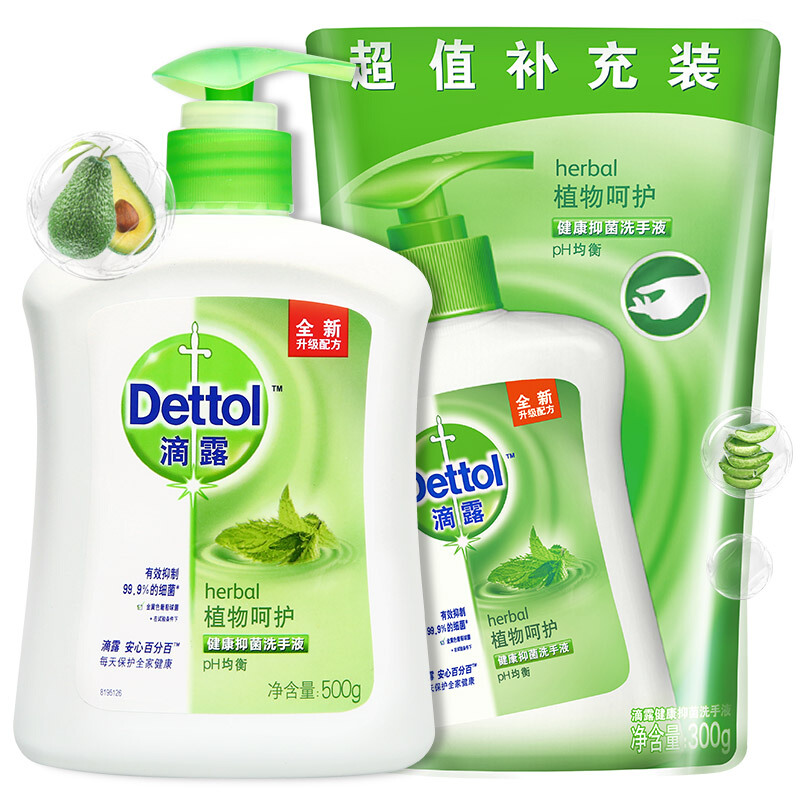 商品名称:滴露健康抑菌洗手液 植物呵护 500g/瓶
