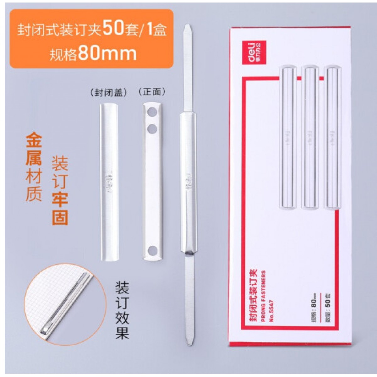 商品名称:得力5547封闭式装订夹50套/盒(银色)