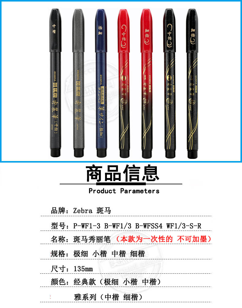 商品名称:斑马WF3中楷秀丽笔签到笔 50支/盒 (单位:支)