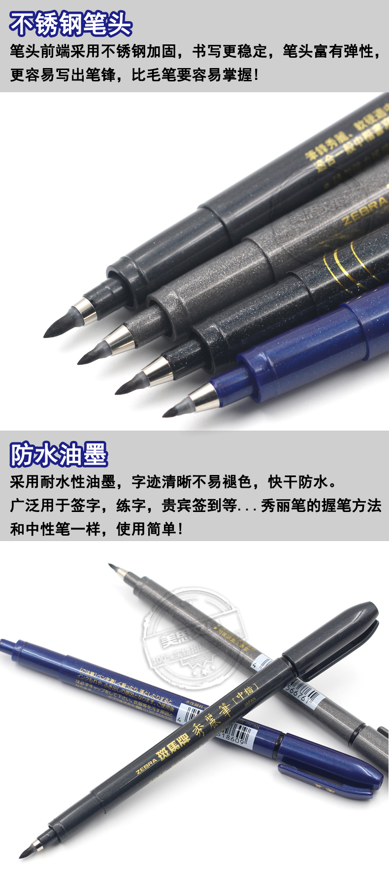 斑马牌 日本进口秀丽笔书法美工笔 WF1小楷 灰杆黑字 50支/盒(单位;支)