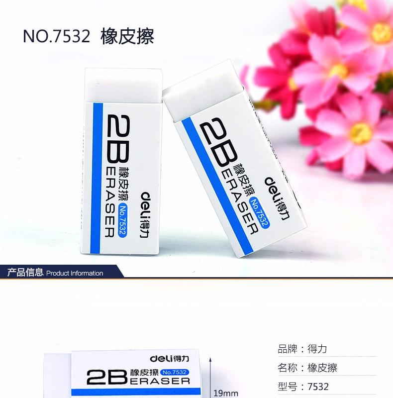 商品名称:得力7532学生橡皮擦 45块/盒 单位:块