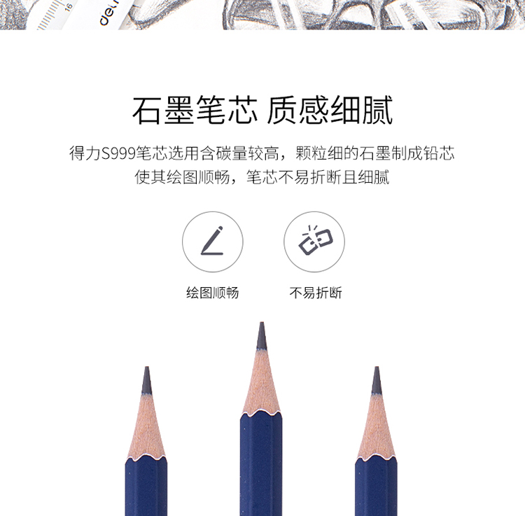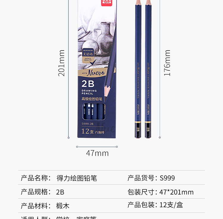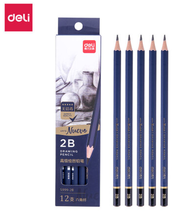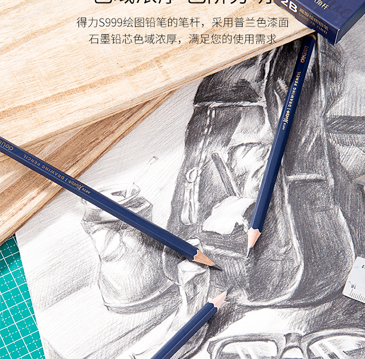 商品名称:得力(deli)高级美术绘图2B铅笔 学生素描速写铅笔 12支/盒 S999-2B