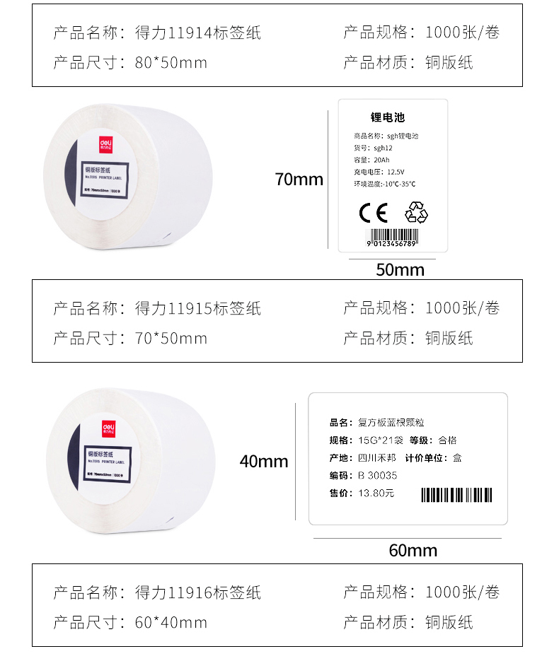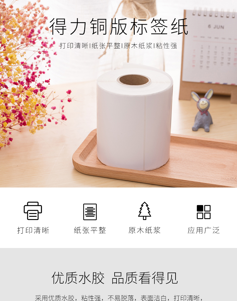 商品名称:得力11916 铜版纸不干胶标签纸/条码纸/打印贴纸 卷装 60*40mm*1000张