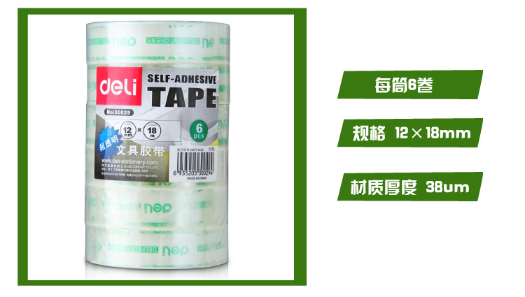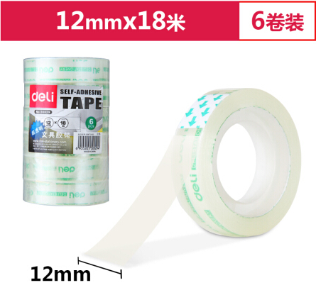 商品名称:得力30029透明高粘易撕文具胶带12mm*18m 6卷/筒