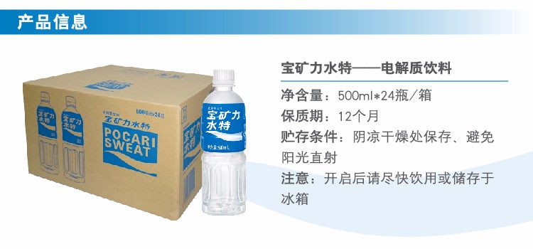 商品名称:宝矿力水特 POCARI SWEAT 电解质运动型饮料 500ml*24瓶 整箱装