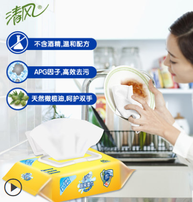 商品名称:清风BWC40E0厨房湿巾带盖加香西柚味油烟机去油去污清洁家用纸巾 40片/包 3 包/箱