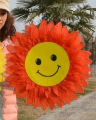 仿真向日葵花笑脸幼儿园舞蹈道具花学校运动会儿童演出手拿道具59cm大红色笑脸多层向日葵