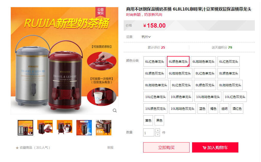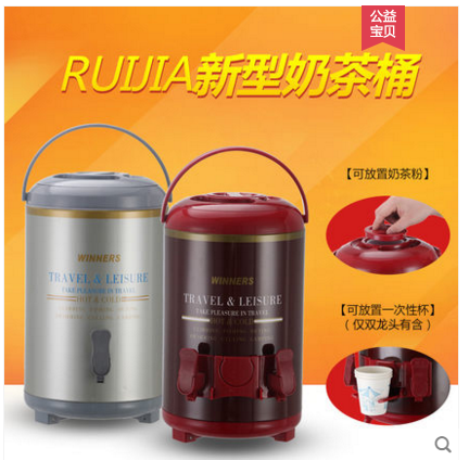 商品名称:商用不锈钢奶茶桶保温桶带水龙头果汁咖啡豆浆桶6L8L10L 10L红色双龙头