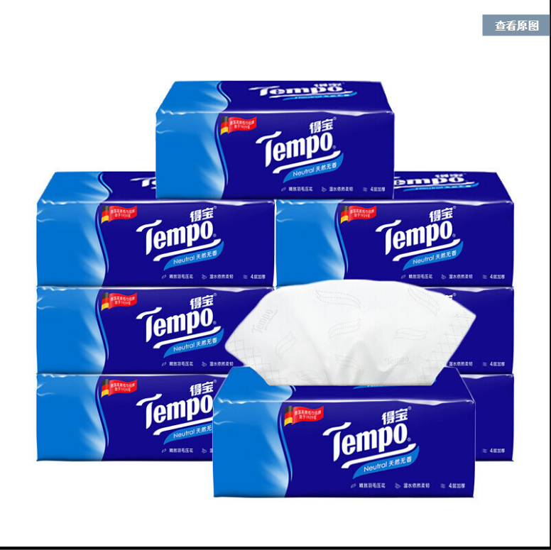商品名称:得宝Tempo/T2367 4层软抽纸巾90抽8包家庭装8提/箱 8包/提