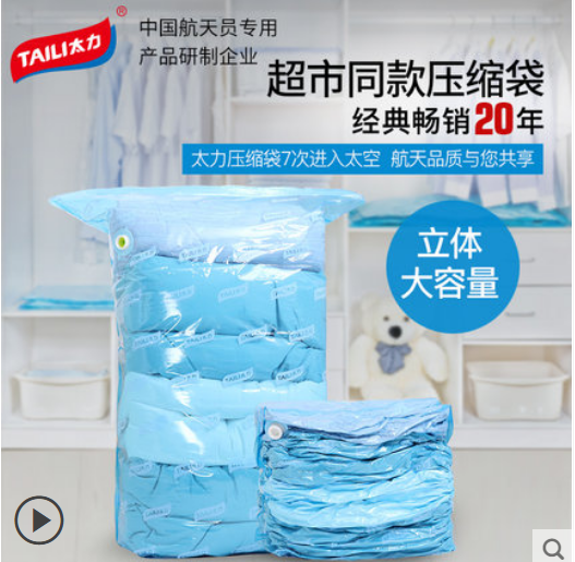商品名称:太力立体压缩袋真空收纳袋特大衣物棉被整理袋抽气行李自由组合{100*80*40cm}