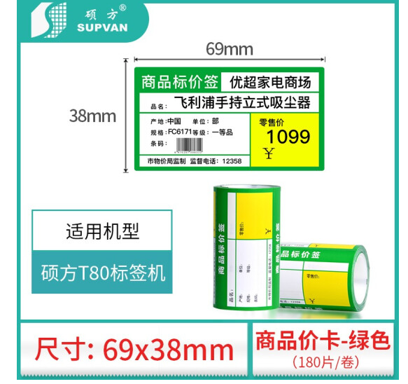 商品名称:硕方TR-70*38RD/JG/N热敏商品标签纸 70*38mm 红色 180张/盒