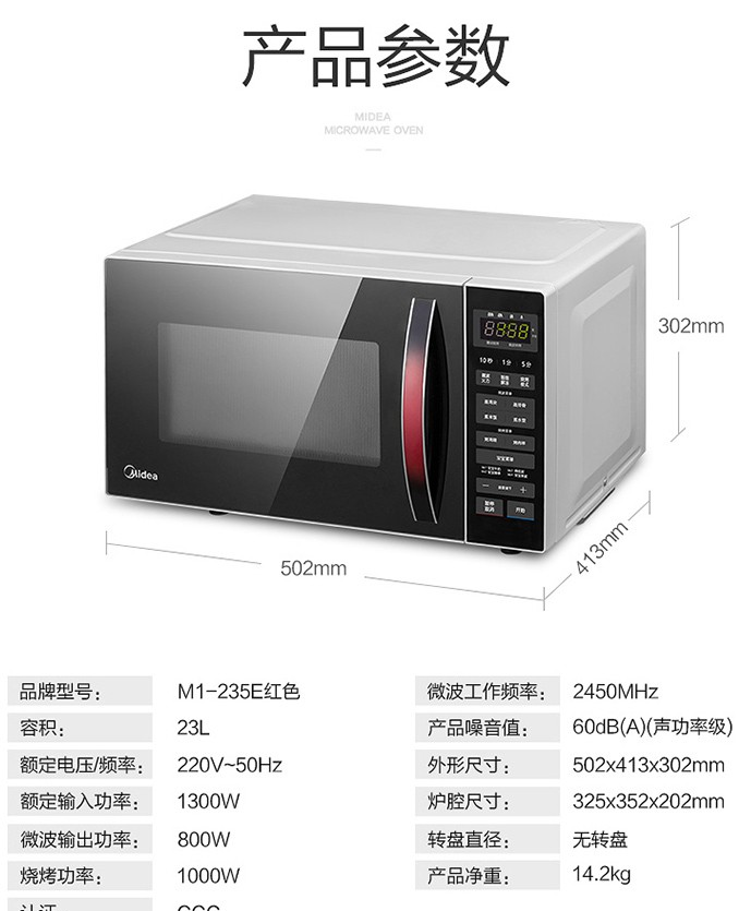 商品名称:美的(Midea)M1-235E 23L家用微波炉 微电脑操控快捷微波炉 平板加热 单机