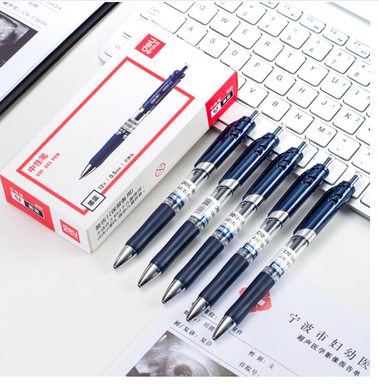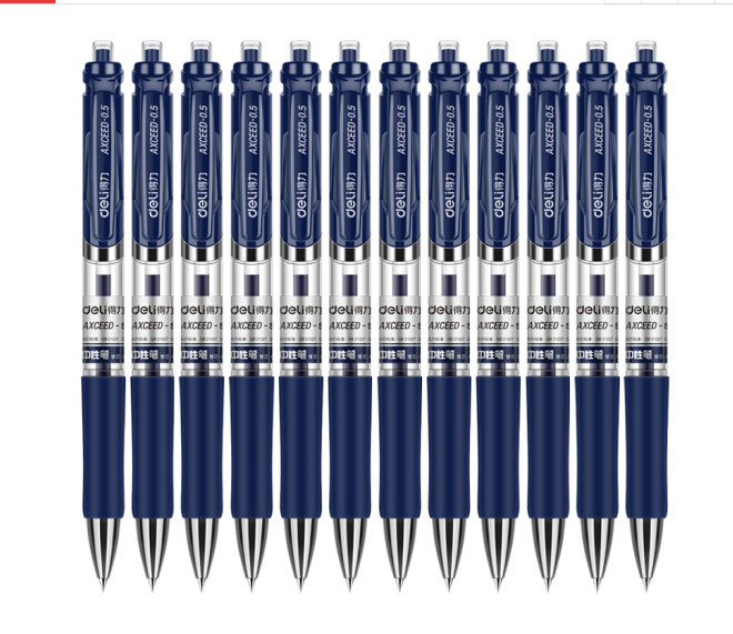 商品名称:得力(deli)S01墨蓝色0.5mm经典办公按动中性笔水笔 子弹头签字笔 12支/盒