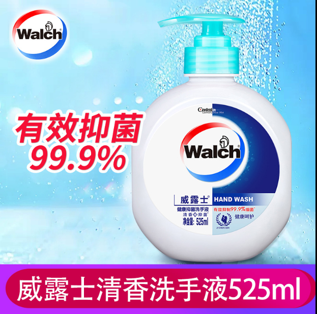 威露士(Walch)健康抑菌洗手液(清香+抑菌 健康呵护)525ml 24瓶/箱