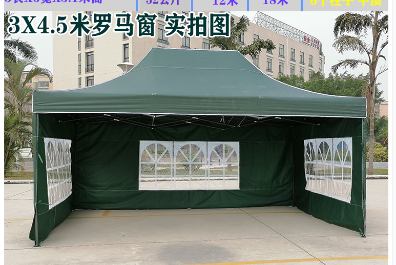 商品名称:户外广告帐篷印字四脚摆摊遮阳折叠棚伸缩帐篷三面四面围布开窗 3*4.5米