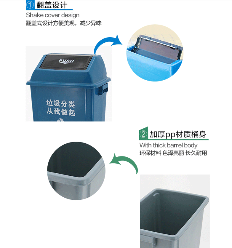 商品名称:垃圾分类垃圾桶塑料弹盖翻盖式