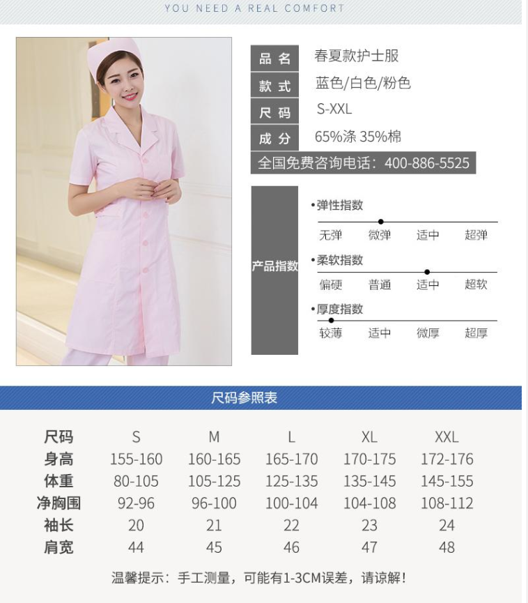 商品名称:护士服夏季短袖女美容院工作服长袖药店医护医师实验服白大褂薄款
