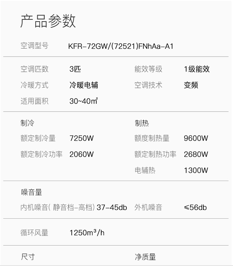 格力KFR-72GW/(72521)FNhAa-A1(WIFI)润酷大3匹变频挂机空调