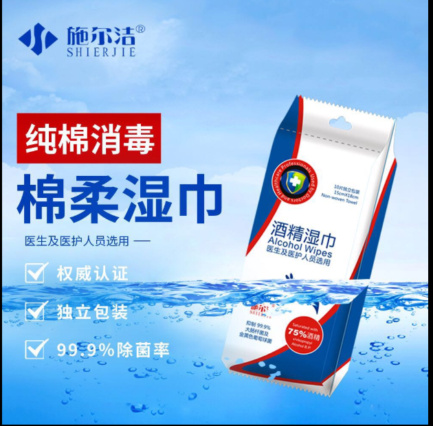 施尔洁75%酒精消毒湿巾1片独立包装 10片/包 120包/箱 单位:包