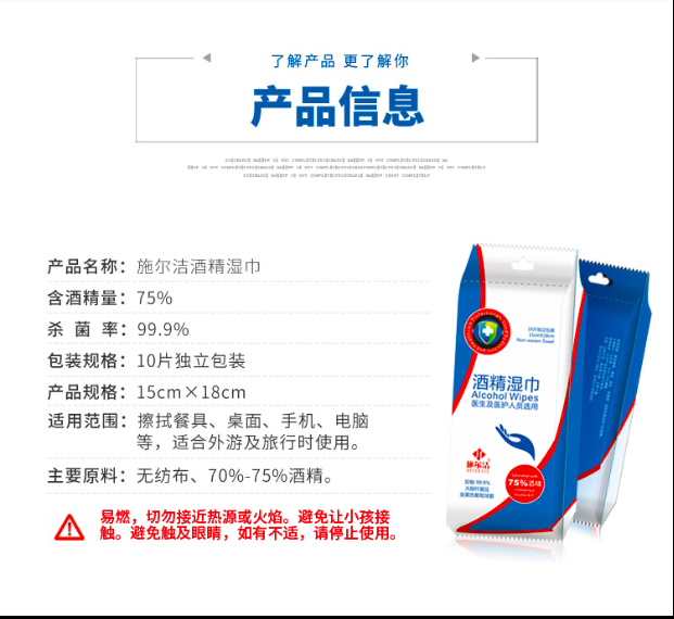 商品名称:施尔洁75%酒精消毒湿巾1片独立包装 10片/包 120包/箱 单位:包