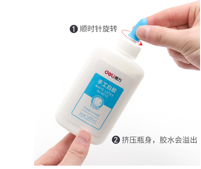 商品名称:得力 deli 9072白乳胶 可手洗 包装颜色随机 120ml 12瓶/盒