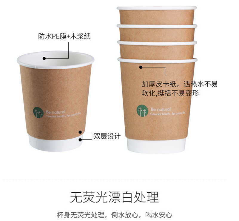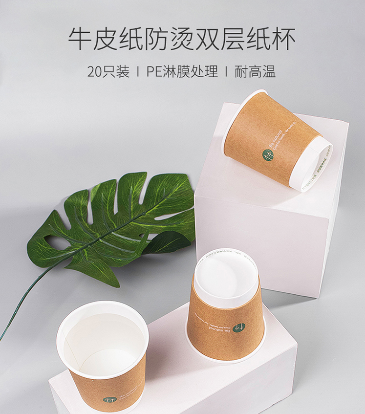 得力(deli)19204双层一次性纸杯 ( 棕色)20只280ml 240G*18gpE膜
