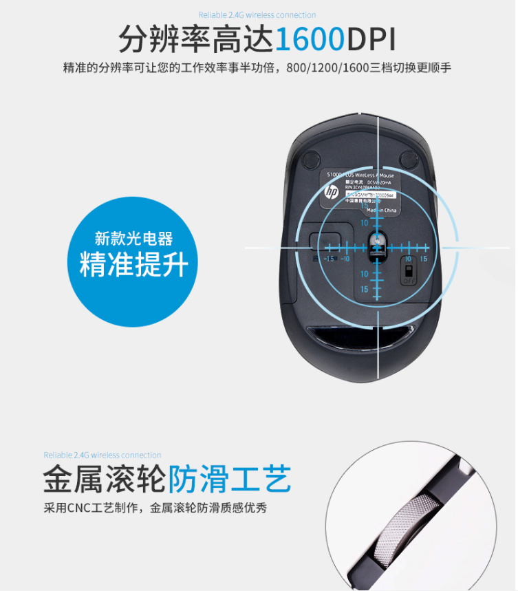 商品名称:惠普(HP)S1000 Plus 无线鼠标 办公鼠标 黑色