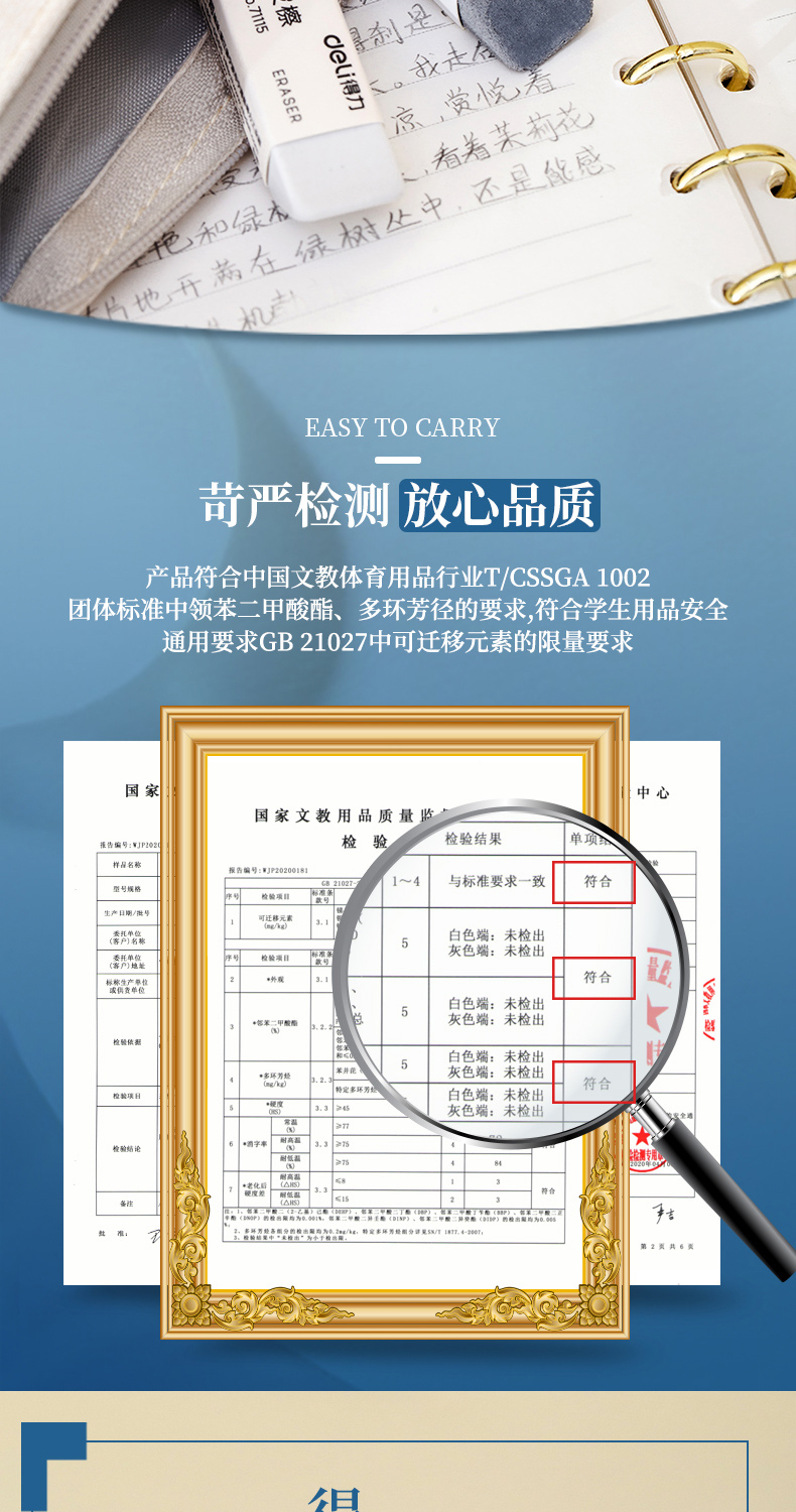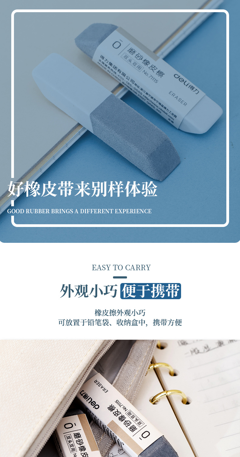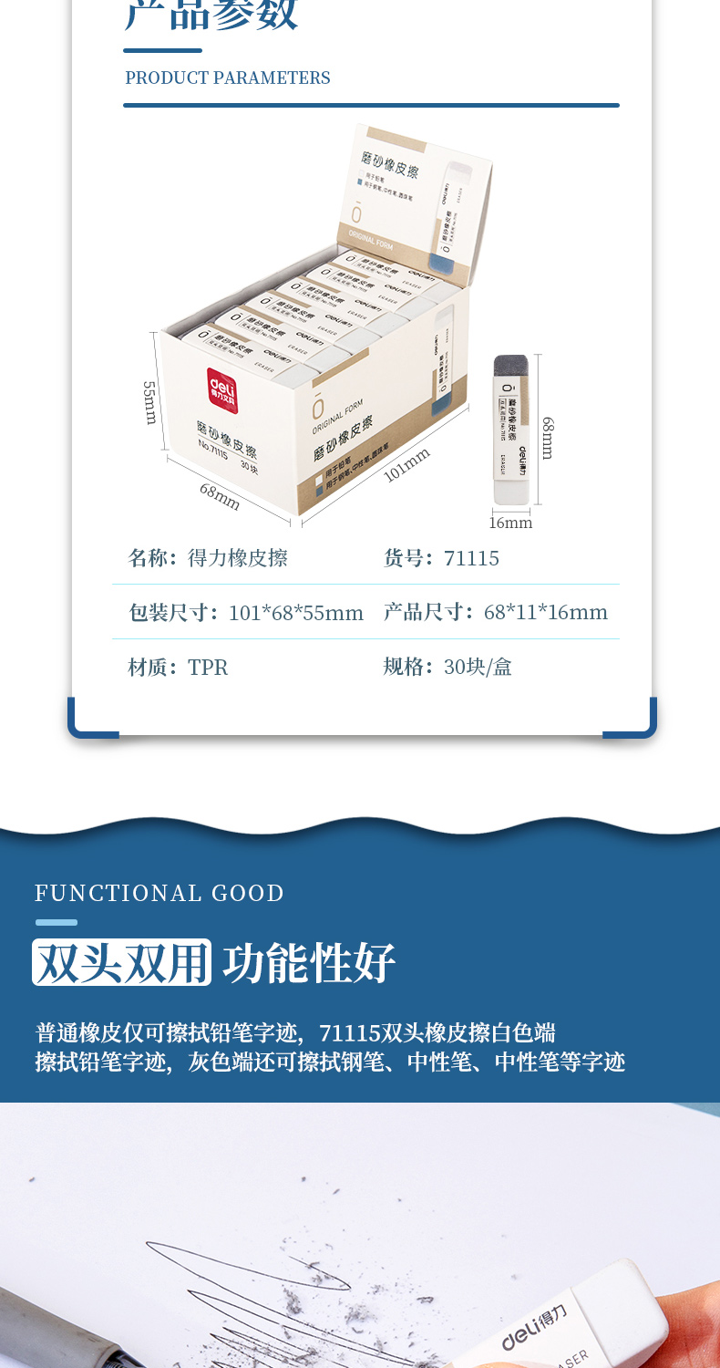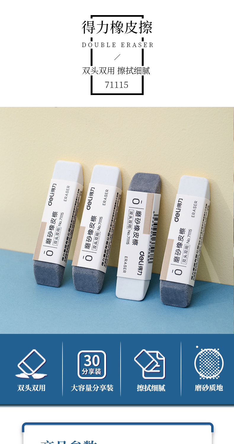 商品名称:得力71115磨砂橡皮擦 30块/盒 单块