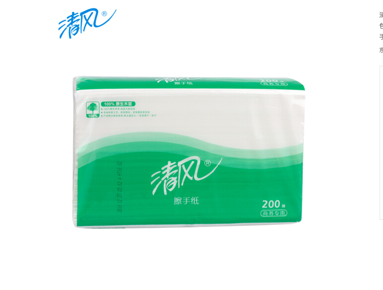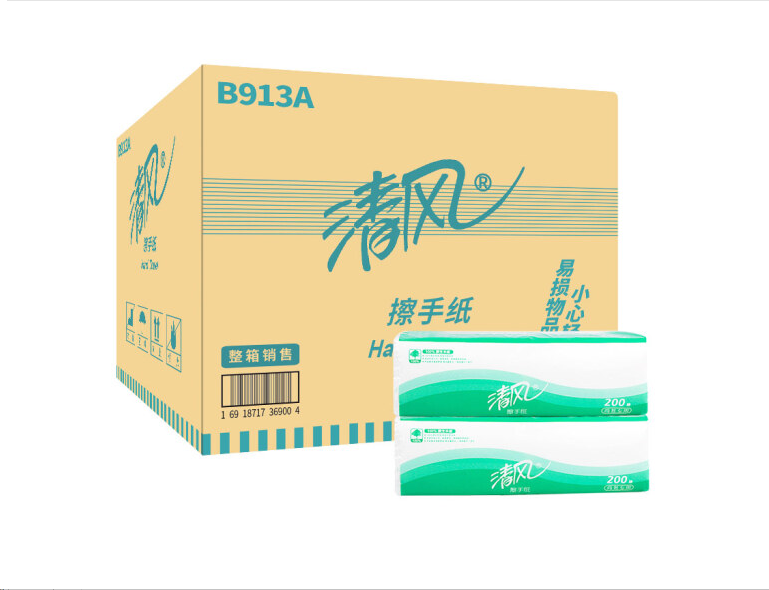 商品名称:清风B913A 擦手纸加厚单层无香200抽/包-20包/箱