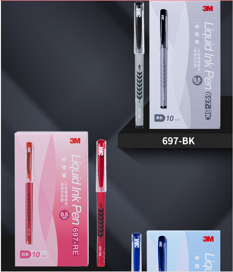 商品名称:3M 697-RE 大容量直液中性笔 0.5mm (红色 )10支/盒