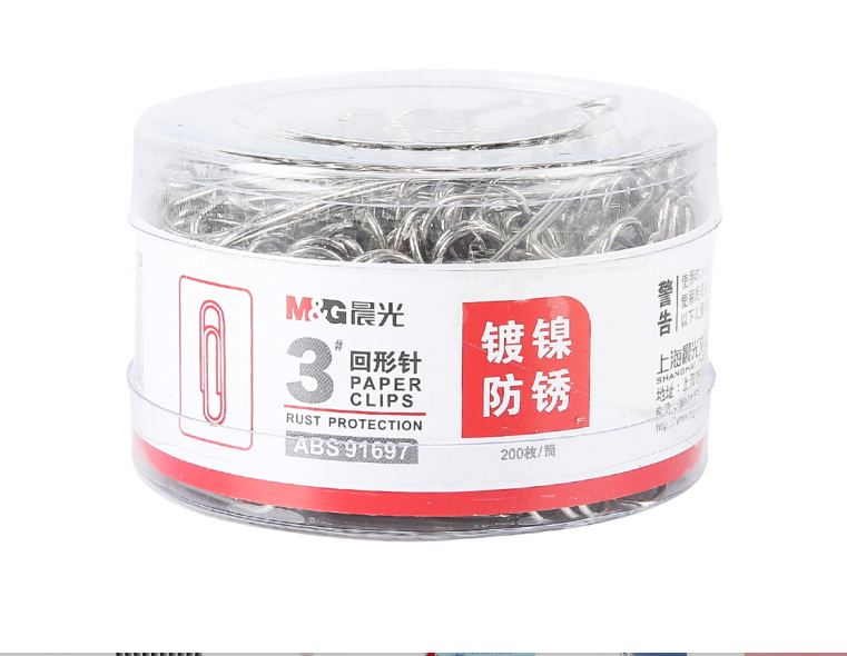 晨光(M&G)ABS91697 防锈回形针 金属曲PVC 办公用品3# 200枚/盒