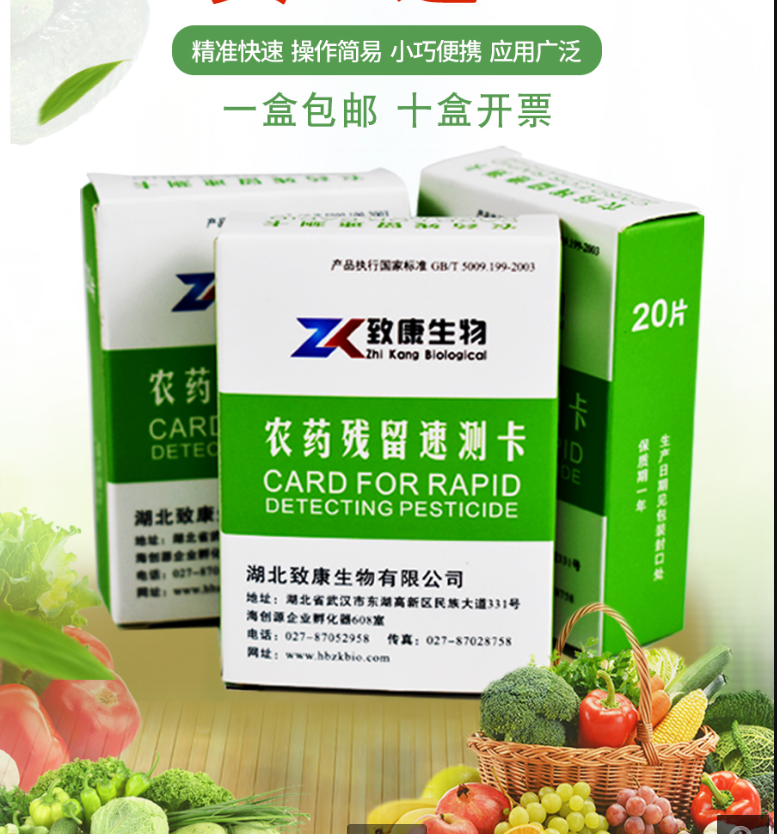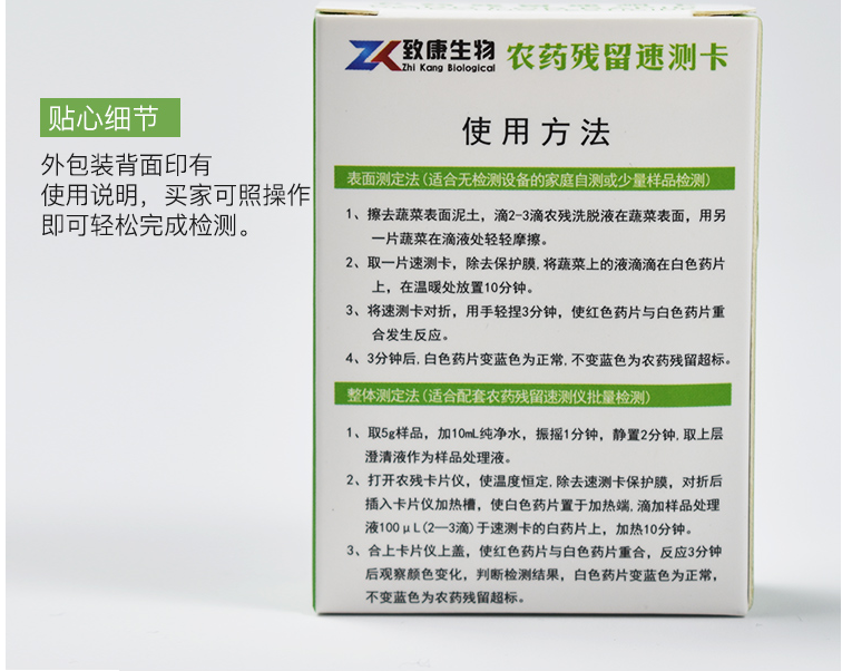 商品名称:致康生物农药残留测卡/水果/蔬菜/农残检测试纸