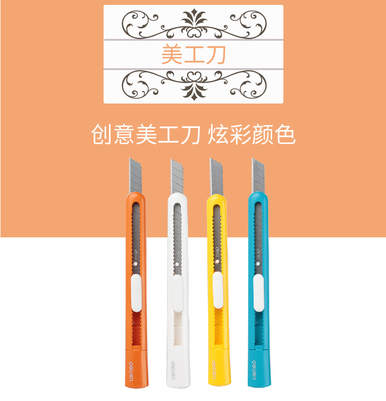得力(deli) 2025 小号美工刀 可爱糖果色便携切纸刀 学生手工课裁剪美工刀 (颜色随机发)