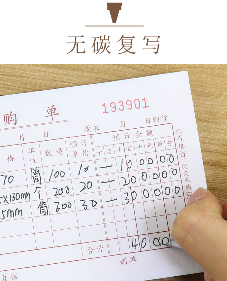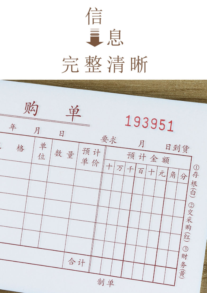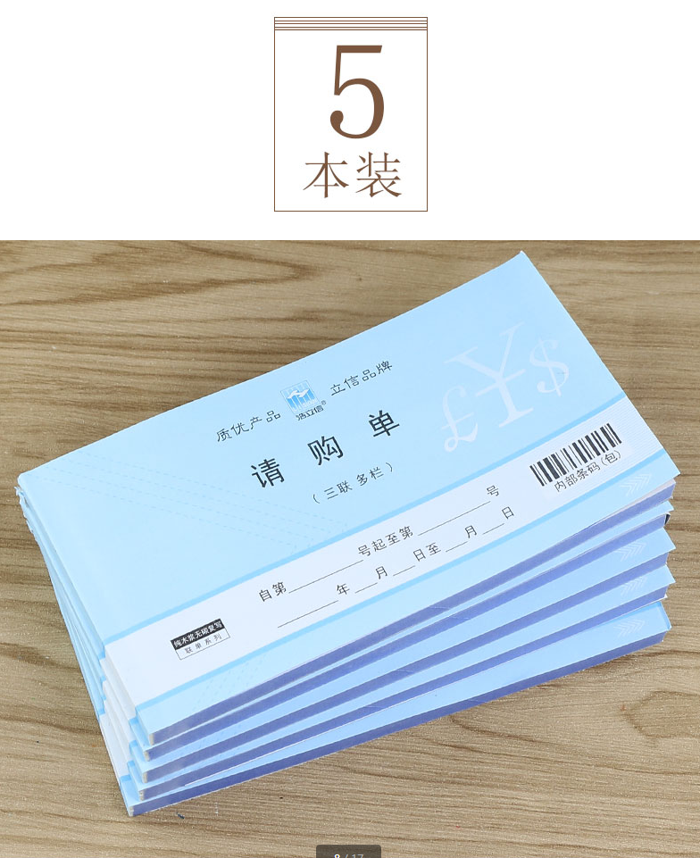 商品名称:浩立信请购单三联无碳复写采购单申请单据物品材料申购单财务办公用品仓库单据本 5本/包