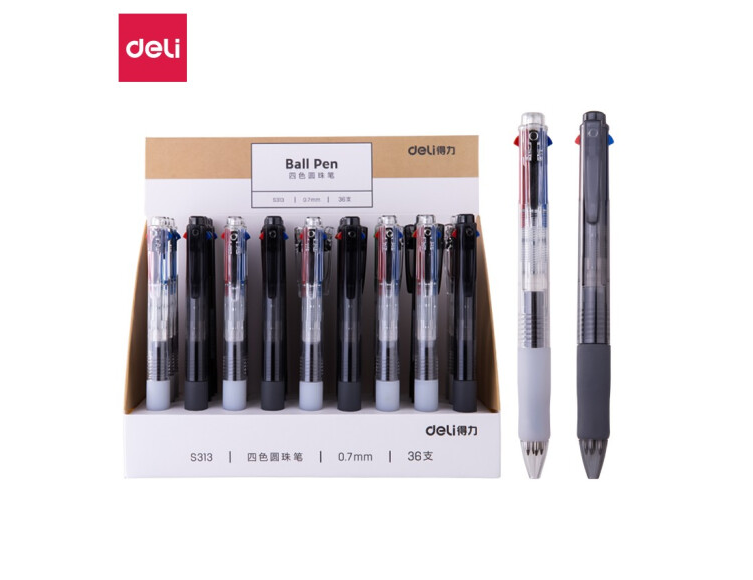商品名称:得力(deli) S313 圆珠笔/中油笔多规格按动式 四色圆珠笔 36支/盒