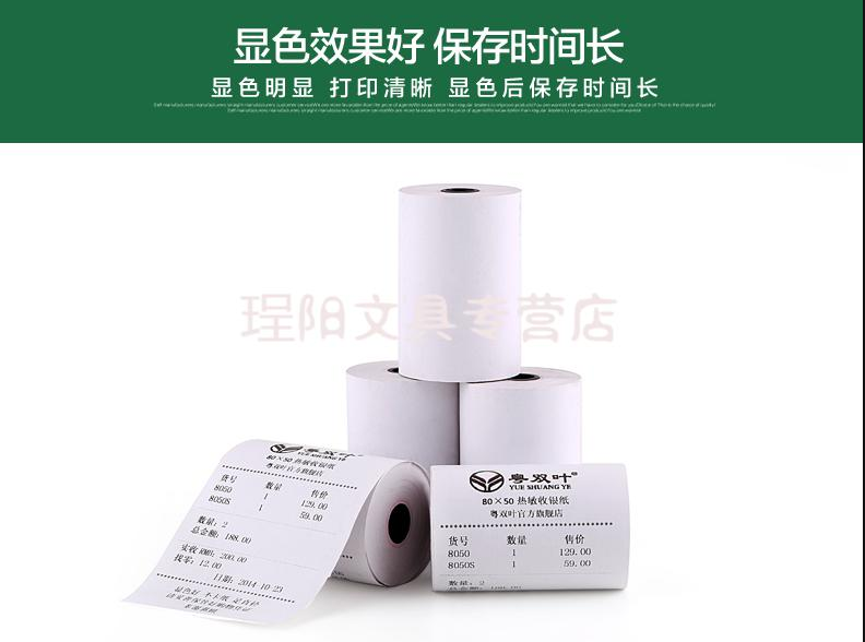 商品名称:粤餐厅双叶收款打印80x50热敏纸80mm便利店收银纸 100卷/箱