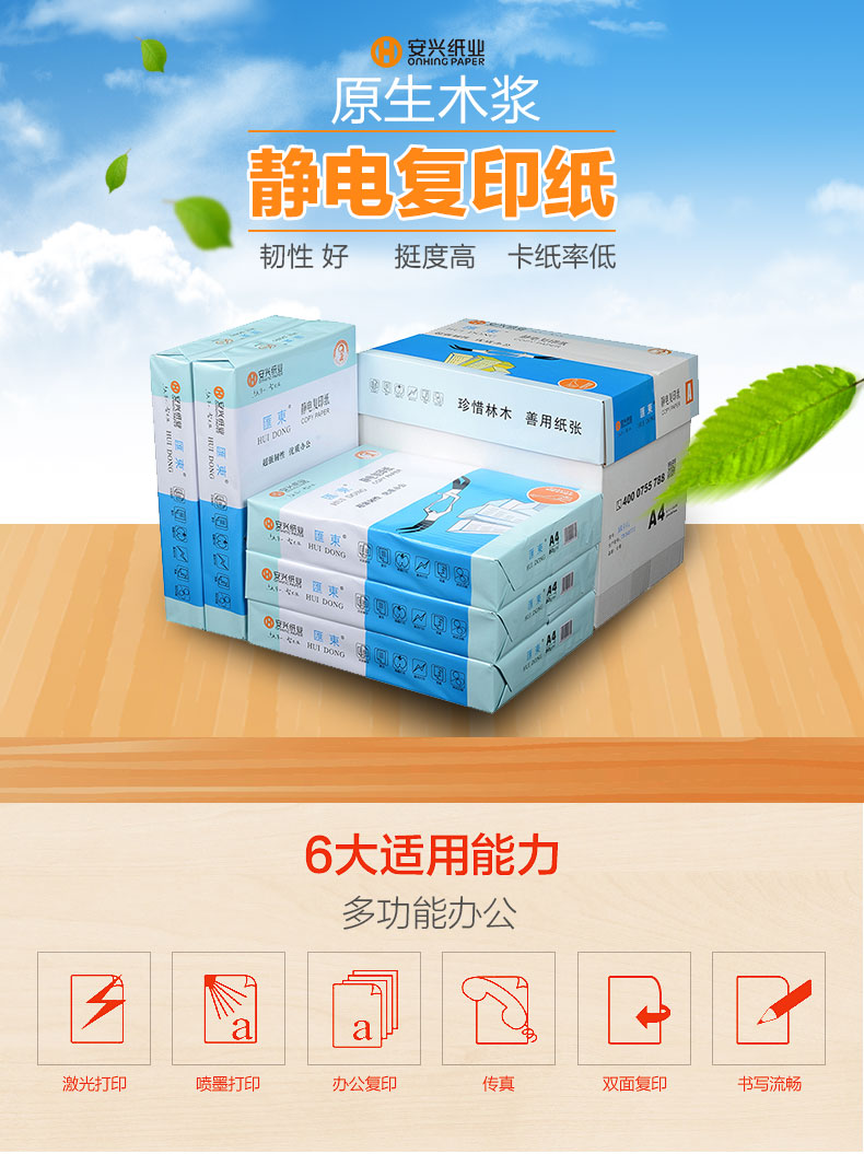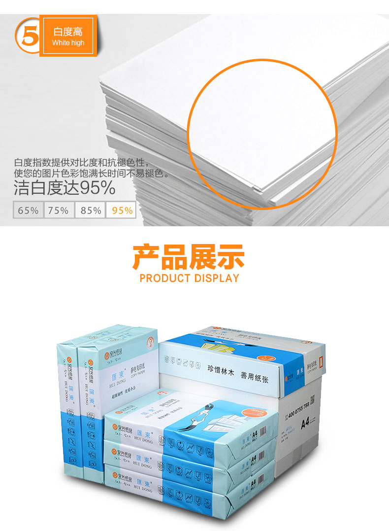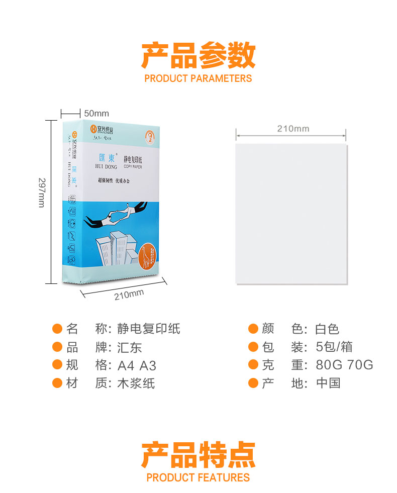 商品名称:蓝汇东复印纸 A3 80g 500张/包 5包/箱 单位:包