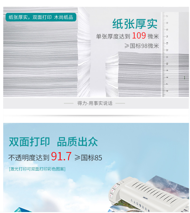 得力Z7502木尚复印纸 A4 70g 500张/包 5包/箱 单位:箱