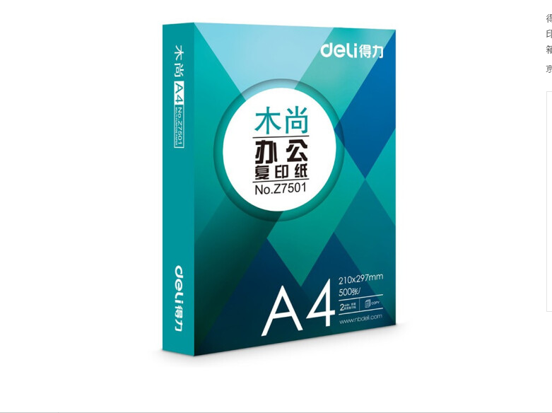 商品名称:得力Z7502木尚复印纸 A4 70g 500张/包 5包/箱 单位:箱