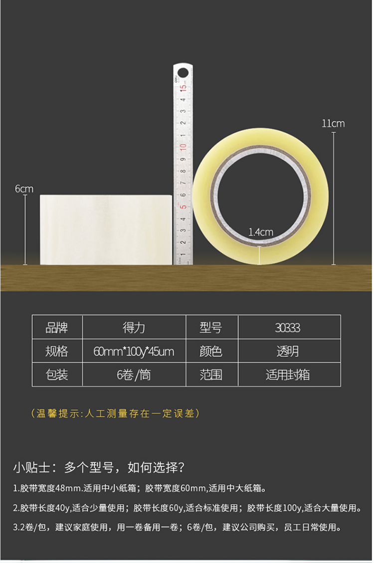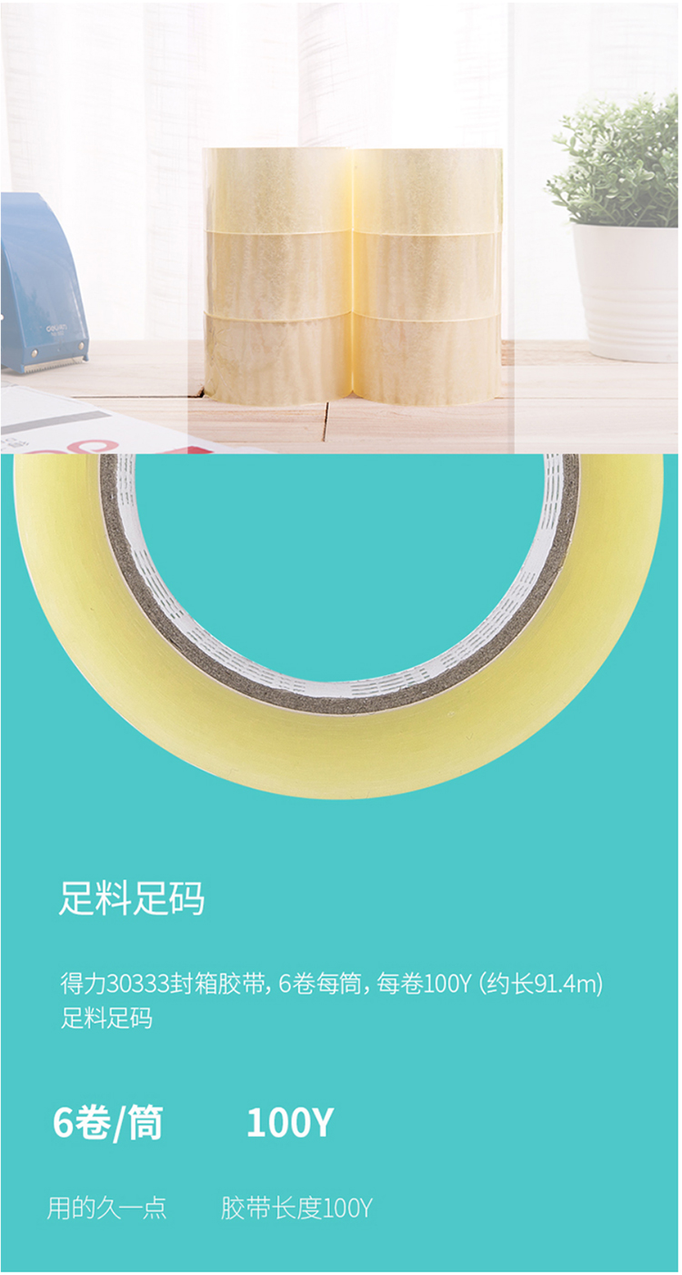 商品名称:得力 Deli 30333 封箱胶带 60mm*100y 6卷/筒