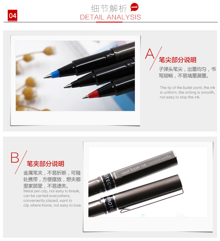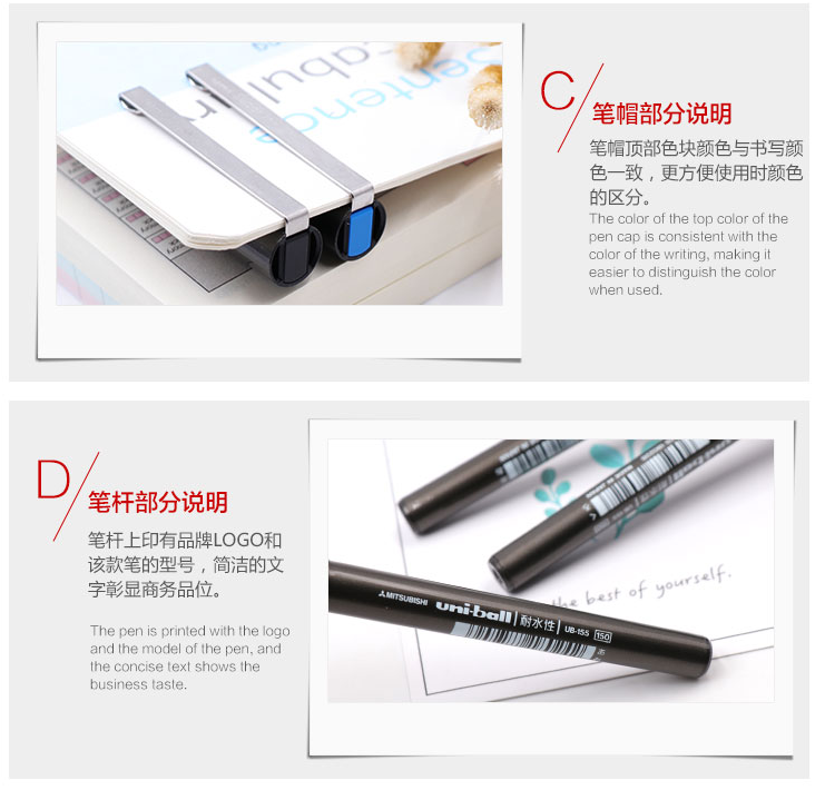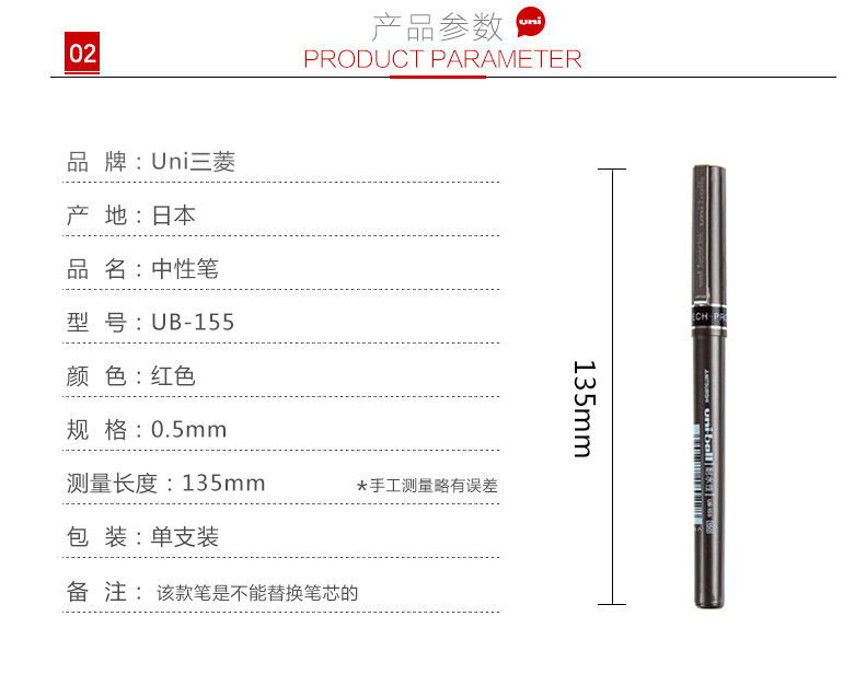商品名称:日本三菱(Uni)UB-155中性笔走珠笔0.5mm学生考试用笔耐水耐晒办公签字笔 红色