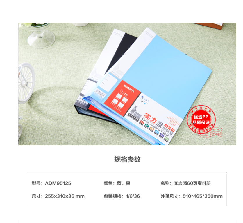 商品名称:晨光(M&G)资料册 实力派塑料文件册60页 档案册 办公用品 ADM95125 黑色