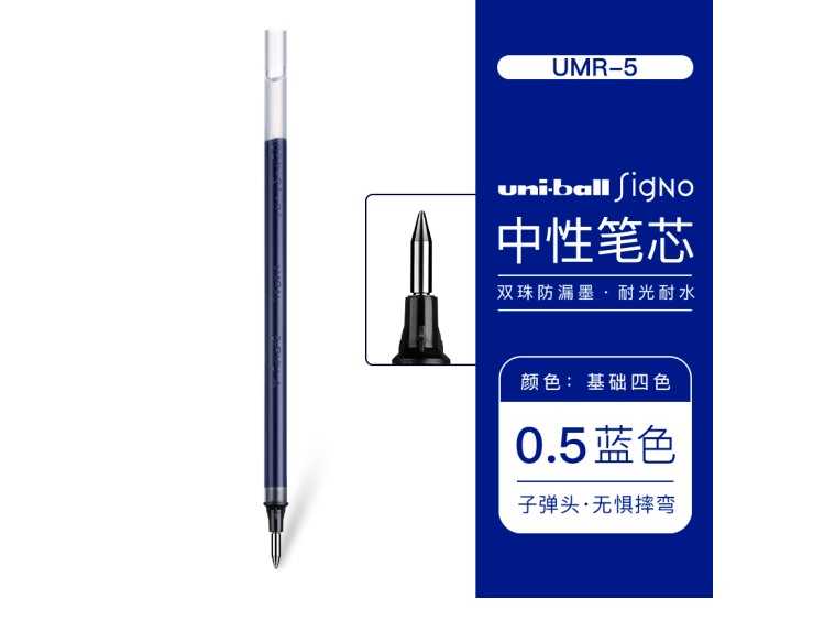 商品名称:日本UNI三菱中性笔替芯0.5mm(适用于UM-100笔)UMR-5笔芯 蓝色 12支/盒