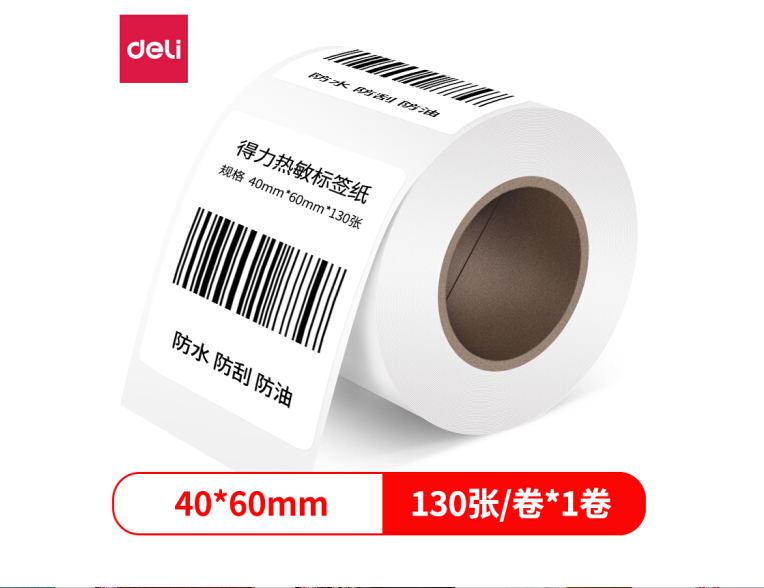 得力11897三防热敏标签纸(白)(40*60mm-130张)12卷/盒