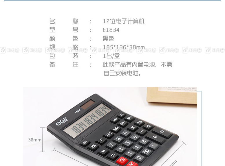 商品名称:益而高 Eagle E1834 计算器 12位 运算 185*136*38mm