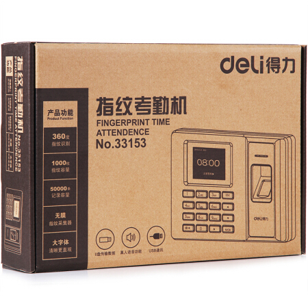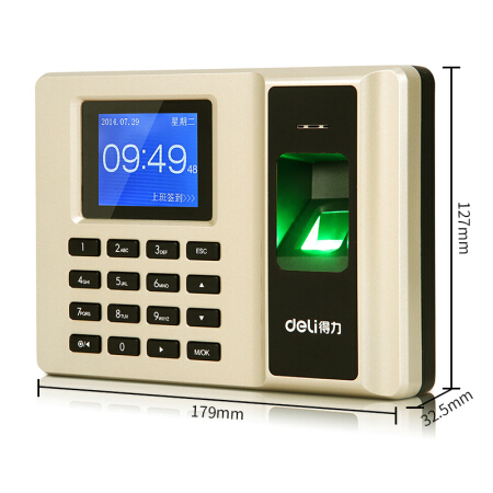 商品名称:得力(deli)33153 智能指纹考勤机 免软件脱机打卡机 自动生成报表 U盘下载